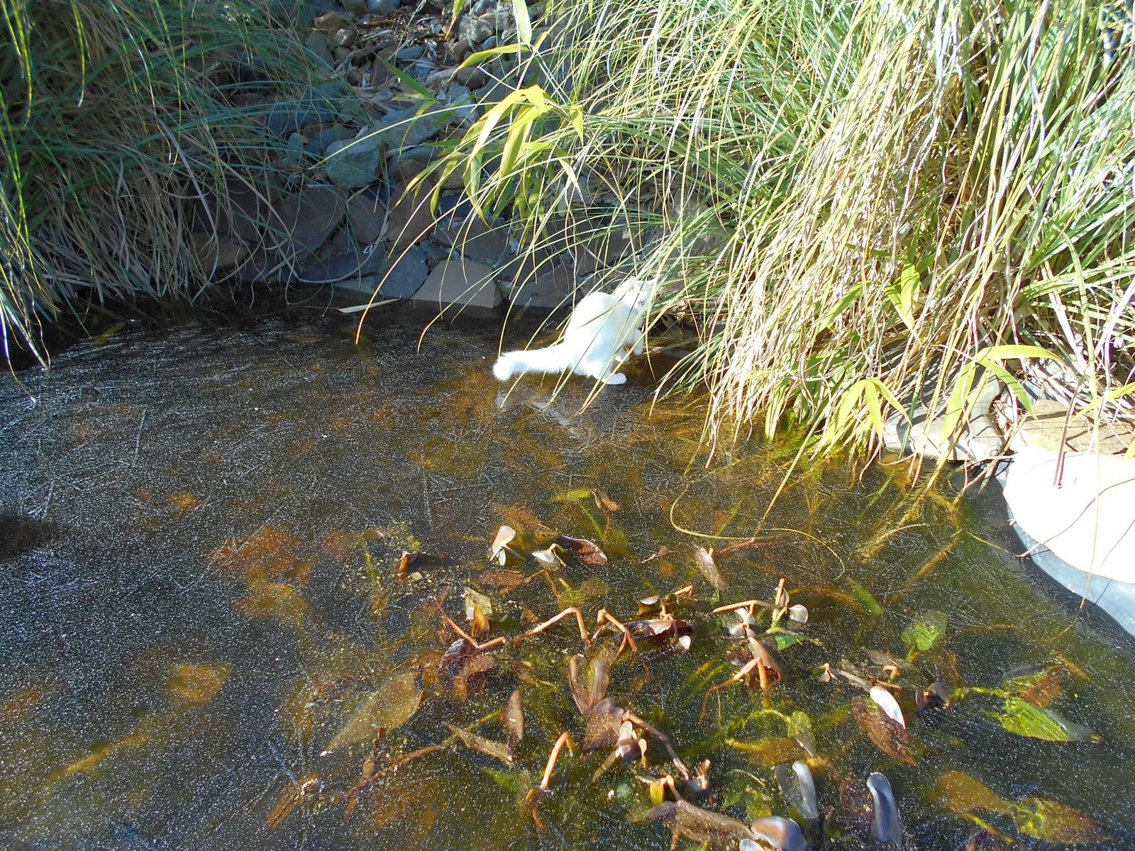 She heads for the far back area of the pond.